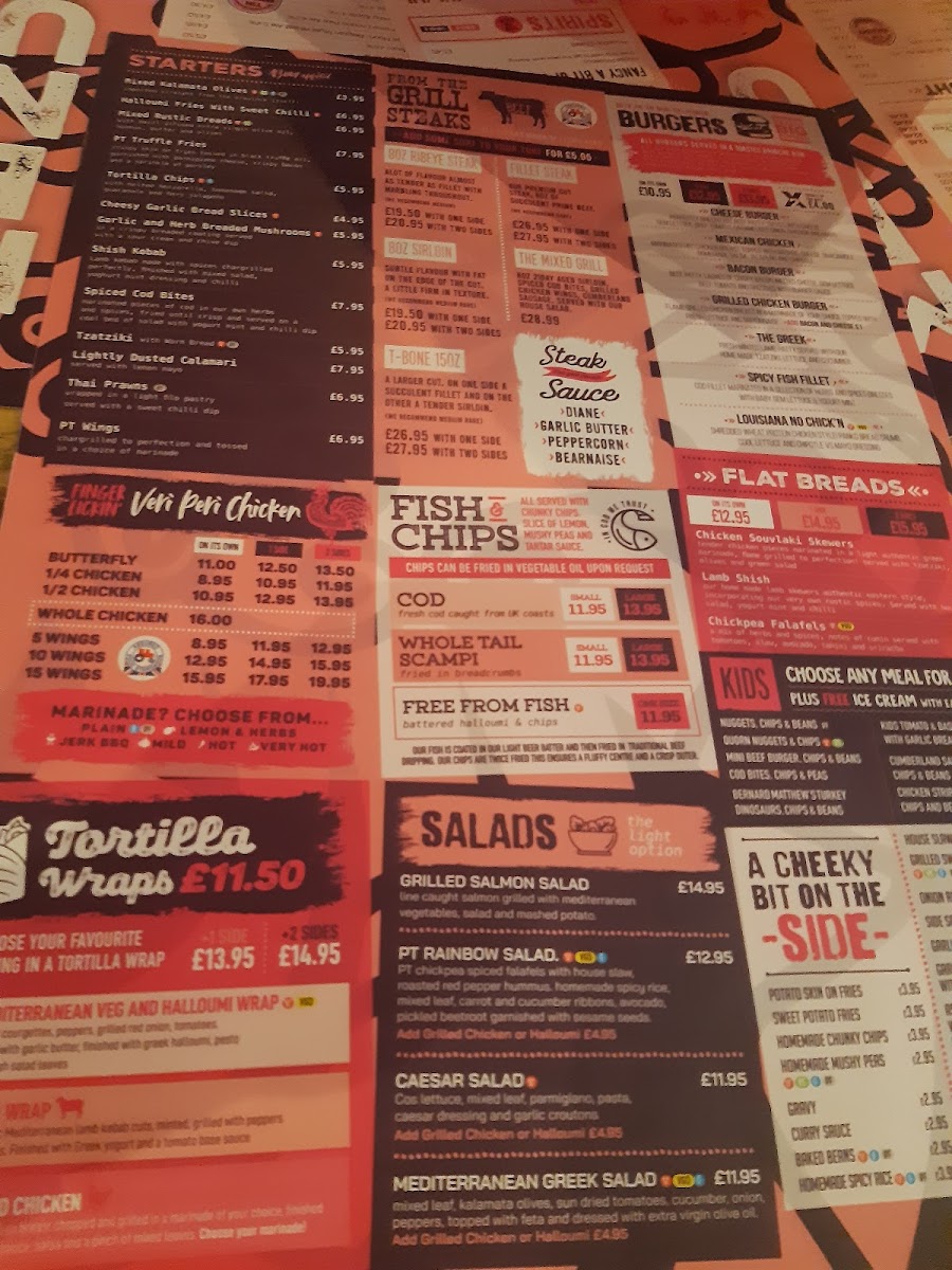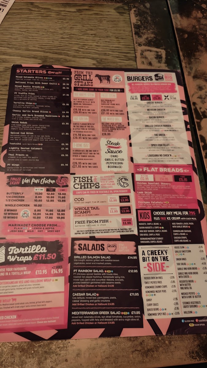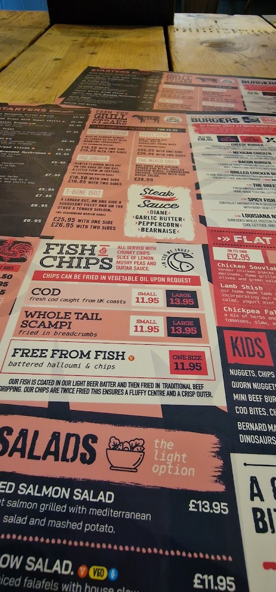 You’ll find traditional British staples like generous portions of fish & chips and various burgers alongside fresh, vibrant options such as Mediterranean lamb kebabs and halloumi wraps. For those looking for something lighter, there are fresh salads and carefully prepared sides to complement any dish.