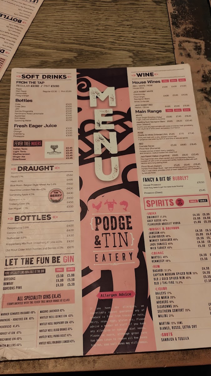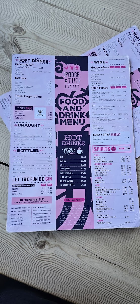 Podge & Tin Eatery Menu